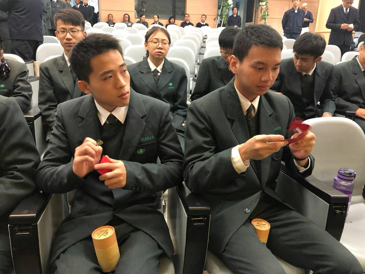 家長會以慈母心細細縫製,加上文昌帝君的加持,最後交由導師親手為每一位同學綁上必勝頭帶,給予同學必勝的信心。