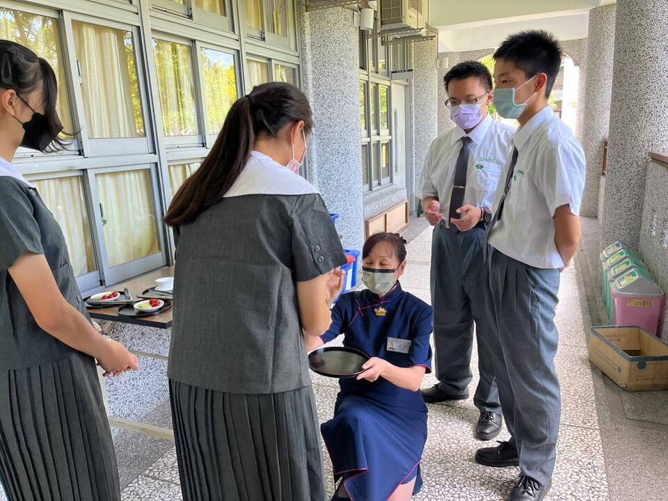 慧玲媽媽引導同學代表為老師奉茶、奉點心,請老師飲一杯三好茶:1.口說好話,2.腳走好路,3.身行好事,祝福老師教師節快樂.