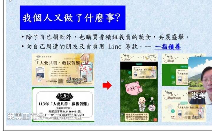 淑美媽媽也深感地震帶給台灣人的災害,分享當天他身為骨捐小組一員與會眾的故事,也分享在社區導覽、生活、諮詢時與香積組義賣跟慈濟醫院新店分院一起共襄盛舉,援馳花蓮。