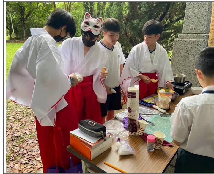 課程結束後,孩子們參加學校舉辦的綠動市集活動,跟學校的同學介紹日本國家,看到老師分享的照片,孩子們非常認真及在活動中學習團隊合作。
