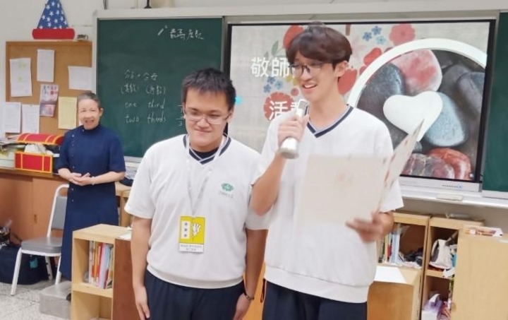 接下來就是重頭戲,在第一節下課前10分鐘,敬師謝師彩排,在時間非常緊湊的情況下,希望下一節課能給三位老師難忘的回憶。