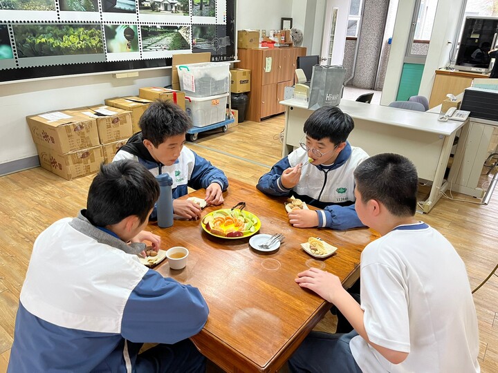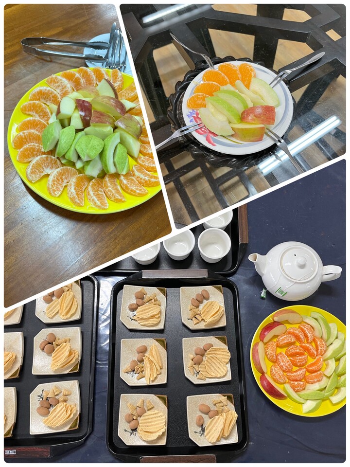 圖三~七:這幾天天氣很冷,懿德媽媽關心穿短袖短褲的孩子要做好保暖,也提醒體育課下課的孩子,記得要先擦汗,並且穿上外套,避免吹冷風而著涼感冒。適逢考前一週,孩子們下課後來慈懿室,喝杯熱茶吃點心,補充體力,上課更有精神。