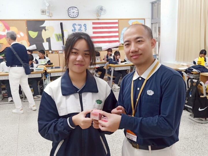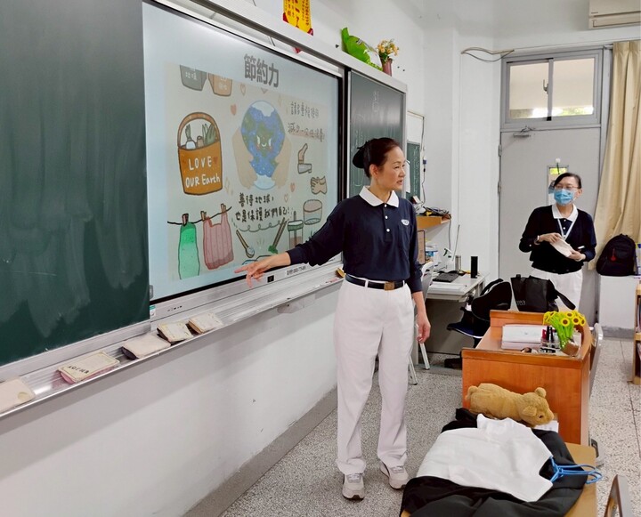 慧玲媽媽接著跟孩子們分享了「55項綠行動」---減塑力、減碳力、節約力、知識力,慧玲媽媽採用問答的方式,提問「5個生活中就能實踐的減塑方法」,孩子們舉手搶答,慧玲媽媽準備了結緣品送給舉手回答的孩子。最後,還分享了「9招減碳生活」,培養少肉多蔬食、省水、隨手關燈、利用大眾運輸…等,希望大家從生活中,力行落實減碳。