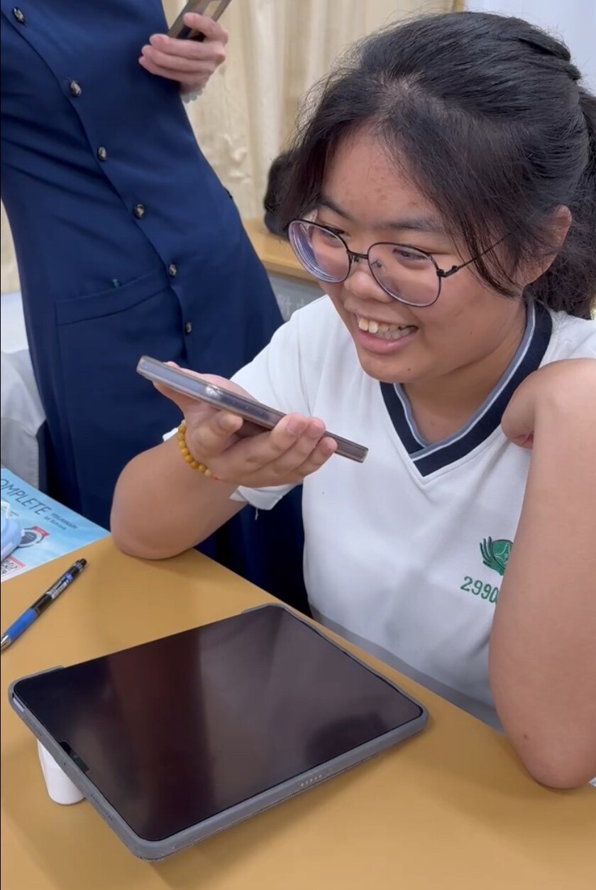 所以接下來的活動,就是讓孩子們利用懿德爸媽的手機來串起愛的連線,向想要感恩的媽媽或家人說出,「我愛您! 祝您母親節快樂!」