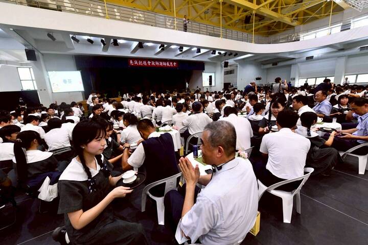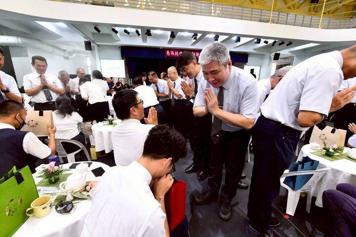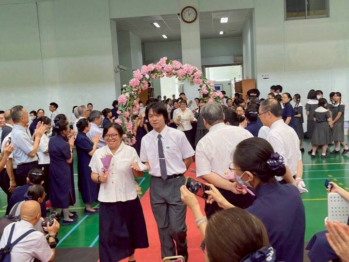 若岑媽上台時是直接兩淚含噙,再由校長遞上手帕輕拭眼角說淚點低,相信二十五年的懿德日子,領航員心理是複雜卻是收穫滿盈,隨後大家給七八九月的慈誠懿德爸媽慶生唱生日歌。