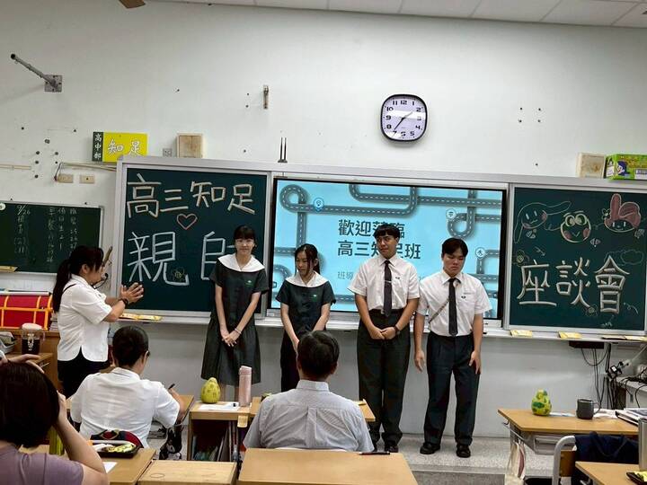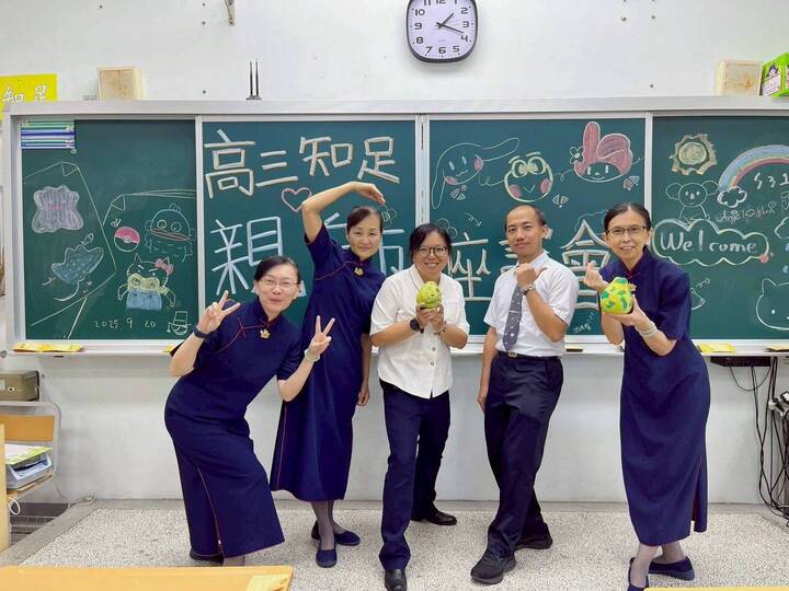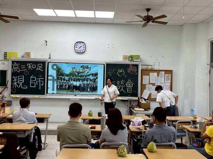午餐後,高三知足班的爸媽們再次抽身運用短促時間,前往高三導師教室與陳君儀老師相約見面,互道平安也相互致贈中秋與敬師禮物。