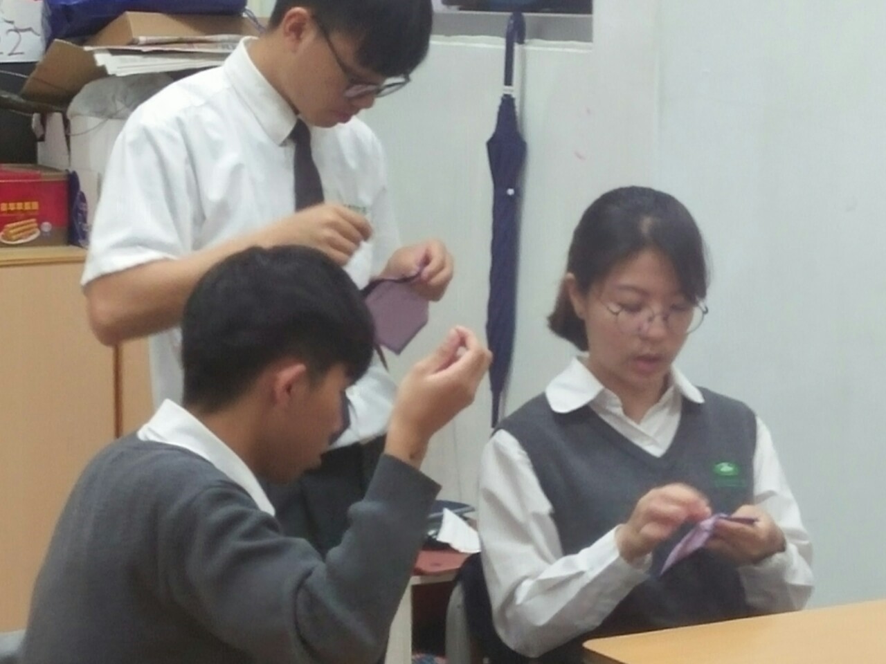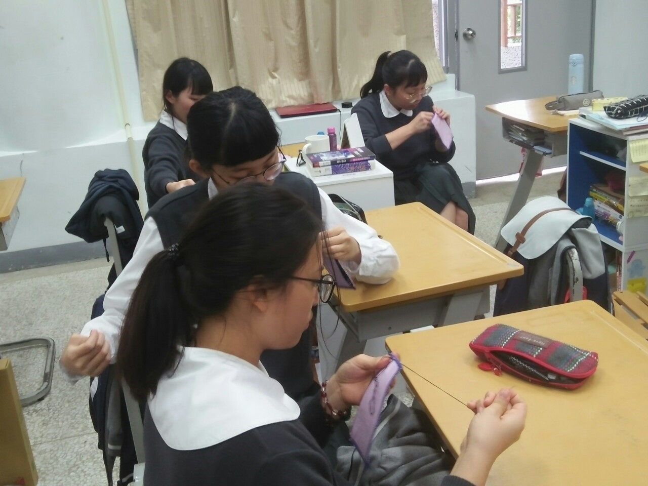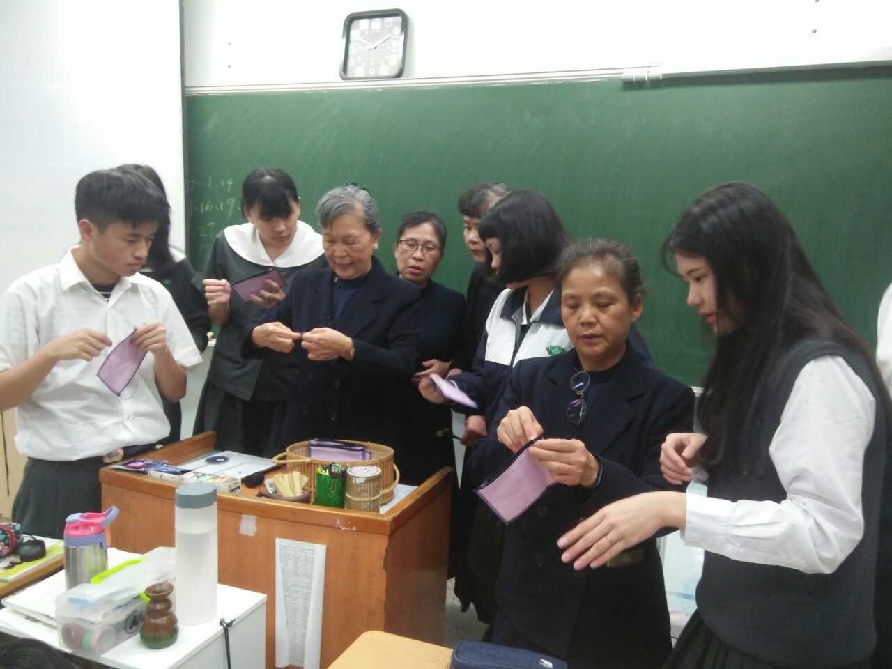 懿德爸媽出席七位(缺席:素翠/尊浩),課間先欣賞食在季節上人開示影片,讓同學了解四季食材及作物,接著慈明師兄講寒食節由來及意義,最後由春黎師姊教大家縫製錢包,完成後大合照,和樂融融。