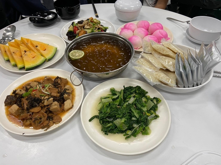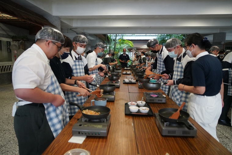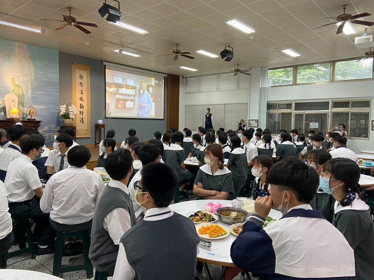 回到校園,將運動服換回整齊的制服後,來到妙膳廳享用午餐,午餐體驗香積飯,透過孟然主任的講解,讓孩子們能了解香積飯的作用,並珍惜食物得之不易,妙膳廳也為同學們準備豐富的配菜、甜湯,讓同學們好好享用午餐。