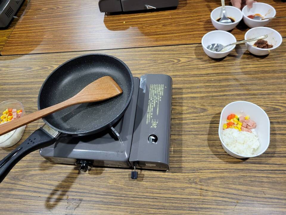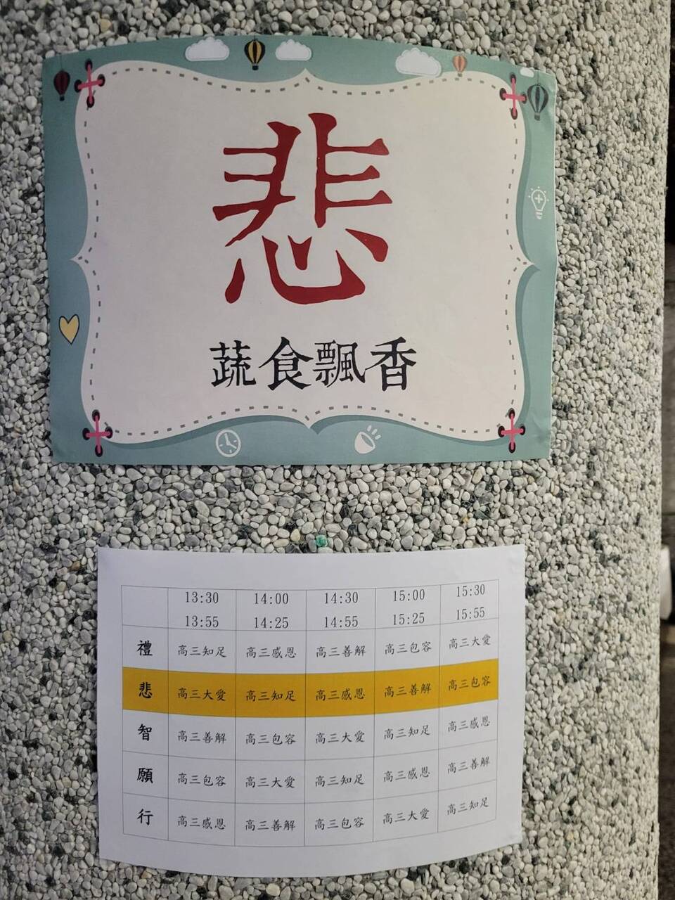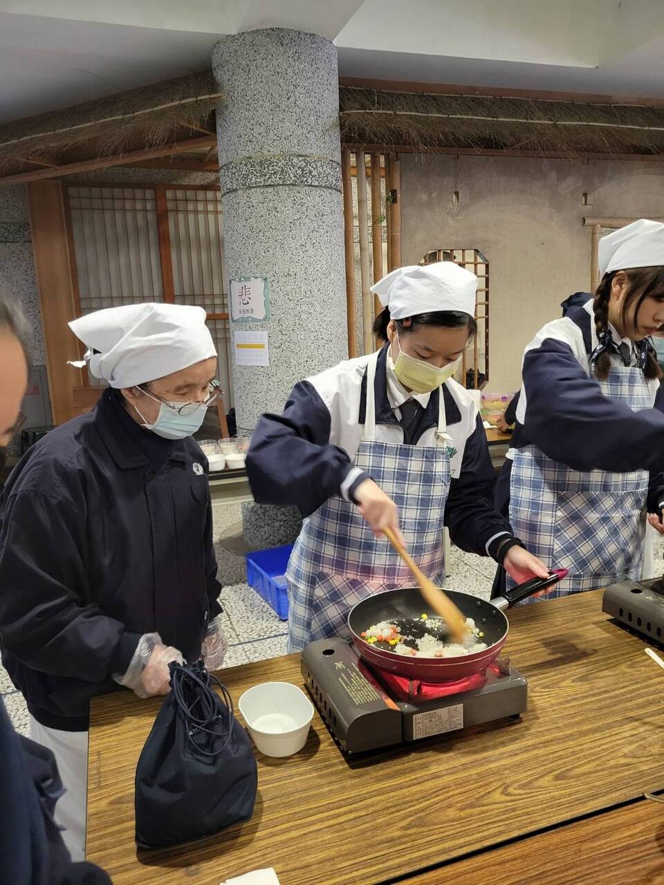 高三成年禮闖關由高二班級協助見習如何去瞭解每一站的義意,這次宥蓁媽媽、玟樺媽媽協助見習這次見習站名是「蔬食飄香」如何場佈;爐具、鍋子、鍋鏟、調味料、配料要如何擺放準備,教孩子們如何使用爐具並教孩子們如何炒飯最後讓孩子們品嘗自己炒出來的炒飯,最後在善後爐具、鍋子、鍋鏟、調味料、配料將場地恢復圓滿這次慈懿日活動。