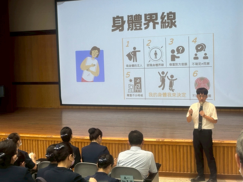 學務處訓育組田丞恩組長講說的「性別平等停看聽」,重點中的重點就是「身體界線」,提到每個人對於身體接觸的接受度不同,有人不介意拍肩,有人連摸頭都無法接受,而對方的感受是唯一標準。他提到與學生單獨互動時,務必確保有第二人在場,或打開門窗,讓外部可知室內情況。這不僅是保護學生,也是保護自己,避免因學生主觀感受而產生誤會。結語時他指出,教育的最終目標是盡可能在校園階段避免性侵、性騷與霸凌事件,為學生建立安全的學習環境。