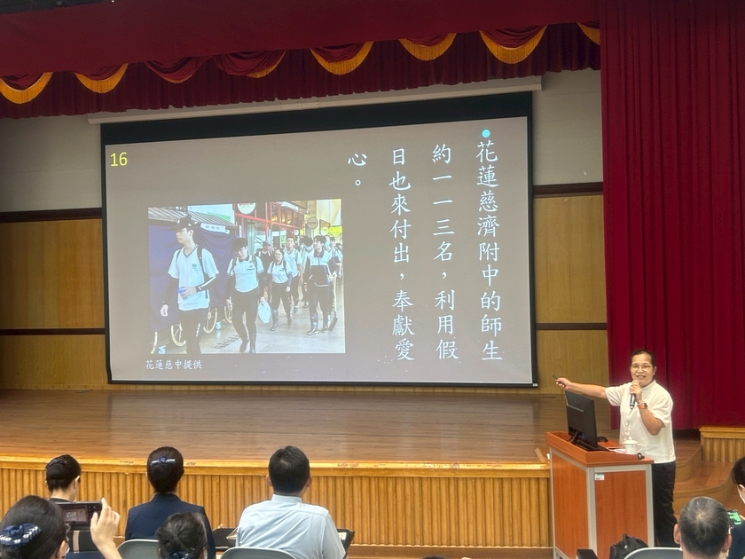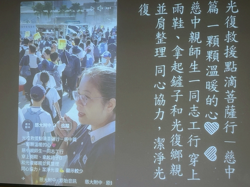 之後學務處魏雲詠主任預告了下個月將舉辦的「慈中二十五周年校慶系列活動」,其中與慈懿爸媽相關的活動有「慈中25 守護洄瀾」、「國際文化校慶運動大會」及「慈中25 聚愛光復園遊會」。他說明了其中的注意事項,以讓爸媽們可以提前準備。